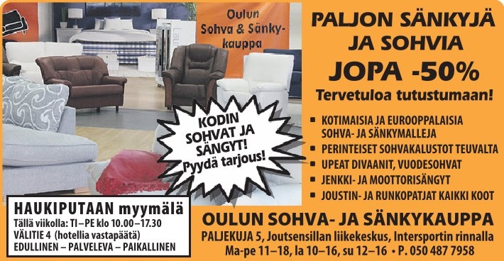 - Divaani-, kulma-, vuode- ja vuodekulmasohvat
